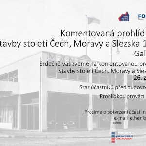 19.09.2018Srdečně vás zveme na komentovanou prohlídku výstavy s názvem Stavby století Čech, Moravy a Slezska 1918-2018. Prohlídka se koná 26. 9. v 17:00. Sraz účastníků před Galerií Mánes. Vstup je zdarma.