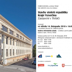 13.11.2018Zveme Vás na vernisáž a následně výstavu Staveb století v kraji Vysočina do Třebíče. Výstava nejvýznamnějších staveb nejen kraje Vysočina, ale také vybraných staveb z celé republiky bude k navštívení v budově Městského úřadu v Třebíči ve vestibulu a prvním patře. Otevřeno je vždy v úředních hodinách radnice.