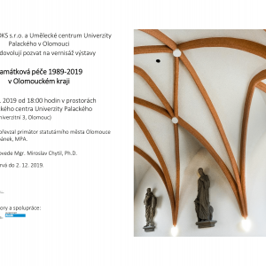 14.11.2019Dovolujeme si Vás pozvat na vernisáž výstavy Památková péče 1989-2019 v Olomouckém kraji, která proběhne 19. 11. 2019 v prostorách Atria - Uměleckého centra UP v Olomouci od 18:00 hodin.