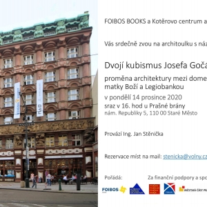 04.12.2020FOIBOS BOOKS a Kotěrovo centrum architektury Vás srdečně zvou na architoulku s názvem Dvojí kubismus Josefa Gočára proměna architektury mezi domem U Černé matky Boží a Legiobankou. V pondělí 14. prosince 2020, sraz v 16. hod u Prašné brány.