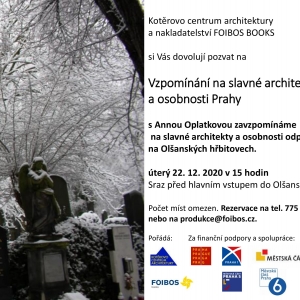 si Vás dovolují pozvat na Vzpomínání na slavné architekty a osobnosti Prahy. S Annou Oplatkovou zavzpomínáme na slavné architekty a osobnosti odpočívající na Olšanských hřbitovech.