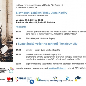10.06.2021Srdečně vás zveme na akci, kdy Kotěrovo centrum architektury o.p.s. a městská část Praha 10 spolu s partnery vyhlašují Rok Jana Kotěry 2021. Cílem této iniciativy je připomenout české i evropské veřejnosti 150 let od narození vůdčí osobností české moderní architektury a architekta evropského významu.