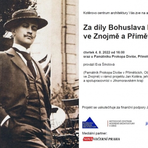 Architoulka s komentovanou prohlídkou za díly Bohuslava Fuchse ve Znojmě a Příměticích (Památník Prokopa Diviše v Příměticích, Obchodní dům Dyje ve Znojmě), provází Eva Šinclová