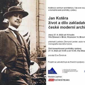12.06.2022Výstava Jan Kotěra, zakladatel moderní české architektury byla 7. června 2022 zahájena ve výstavní budově Metodického centra moderní architektury v Brně, v areálu vily Stiassni, Preslova 53. Výstavu zahájil ředitel Metodického centra moderní architektury v Brně ing. Petr Svoboda. Průvodního slova se potom ujali kurátoři výstavy Dr. Oldřich Janota a prof. Vladimír Šlapeta, kteří přiblížili život a dílo a vztah k brněské architektonické scéně tohoto významného brněnského rodáka.