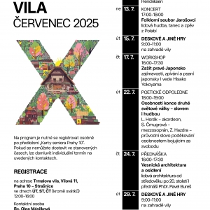 30.06.2025MILÍ SENIOŘI z Prahy 10, i přes léto se můžete účastnit různorodých akcí, které jsou SPECIÁLNĚ PRO VÁS připravené v Trmalově vile (přehled naleznete v příloze).