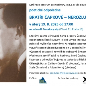 07.08.2025V úterý 19. 8. vás od 17 hodin srdečně zveme na zahradu Trmalovy vily, kde proběhne literární pásmo věnované památce bratří Čapků.
