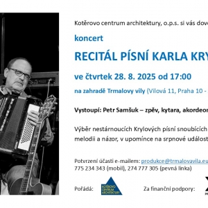 srdečně vás zveme 28. 8. v 17 hodin na zahradu Trmalovy vily k poslechu nestárnoucích Krylových písní snoubících sílu sdělnosti, melodii a názor.
