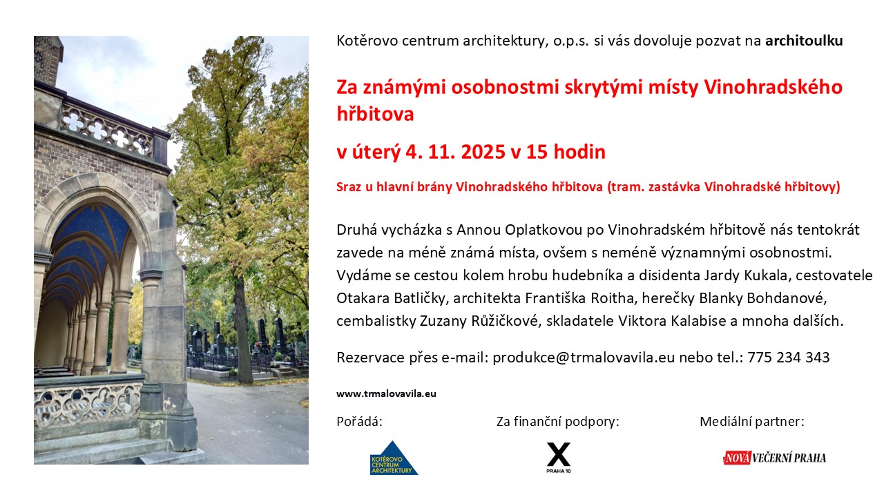 Sraz u hlavní brány Vinohradského hřbitova (tram. zastávka Vinohradské hřbitovy), v úterý 4. 11. 2025 v 15 hodin.