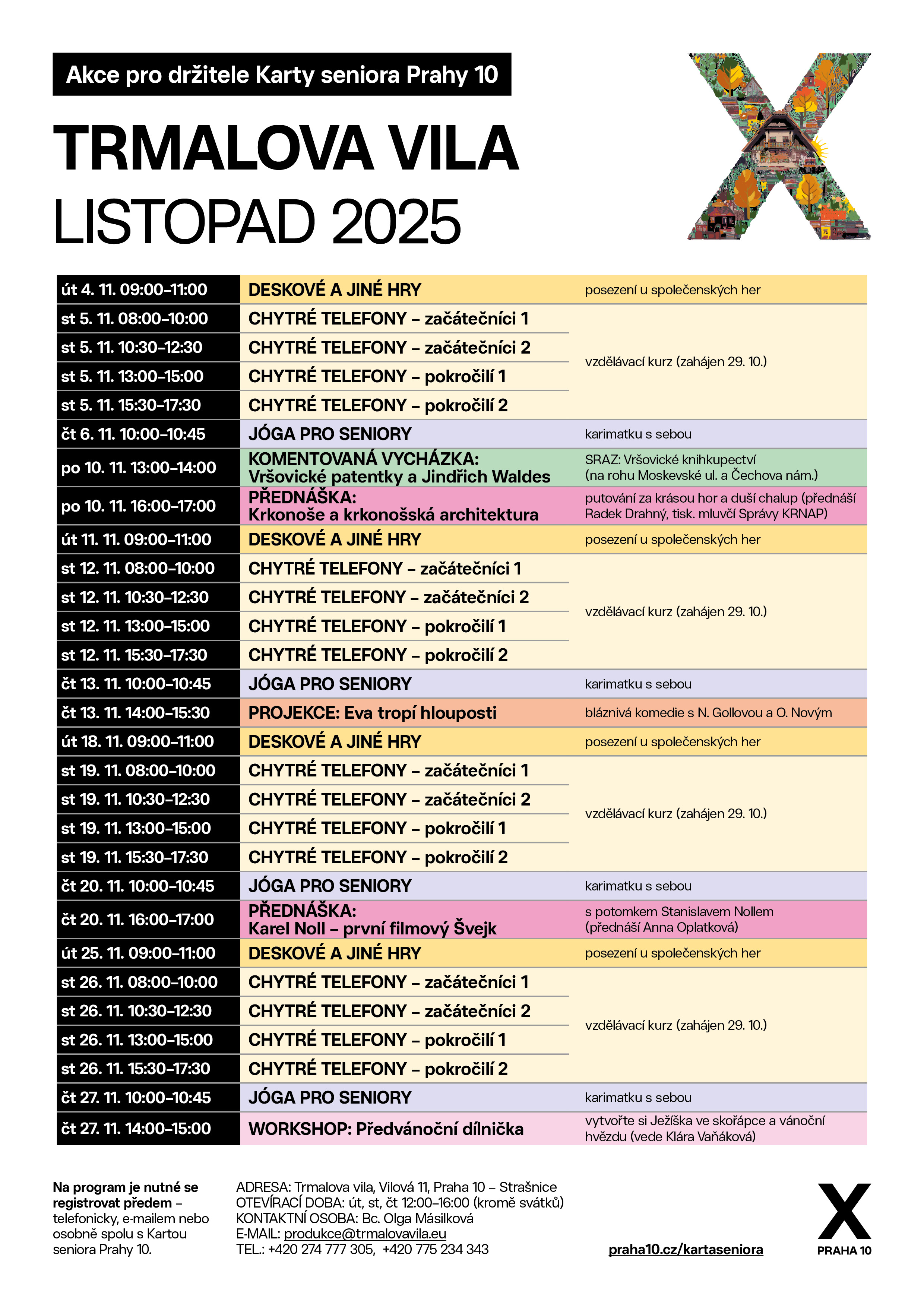LISTOPAD 2025 - Program pro seniory s Kartou seniora Prahy 10