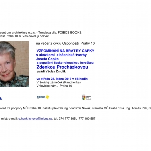 12.01.2017Kotěrovo centrum architektury o.p.s. - Trmalova vila, FOIBOS BOOKS, Městská část Praha 10 si Vás dovolují pozvat na večer z cyklu Osobnosti Prahy 10.