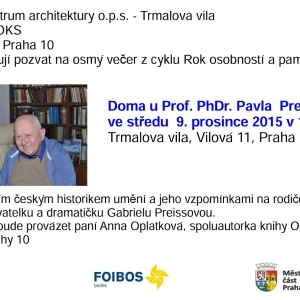 Dovolujeme si Vás pozvat na osmý večer s osobností z cyklu Rok osobností Prahy 10, nazvaný Doma u Prof. PhDr. Pavla Preisse, DrSc. .