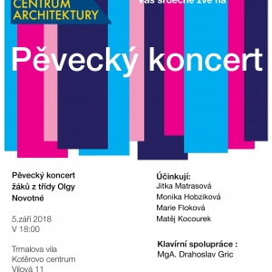 Kotěrovo centrum architektury Vás srdečně zve na pěvecký koncert studentů pod vedením Olgy Novotné, který se uskuteční 5. září od 19 hod v Trmalově vile.