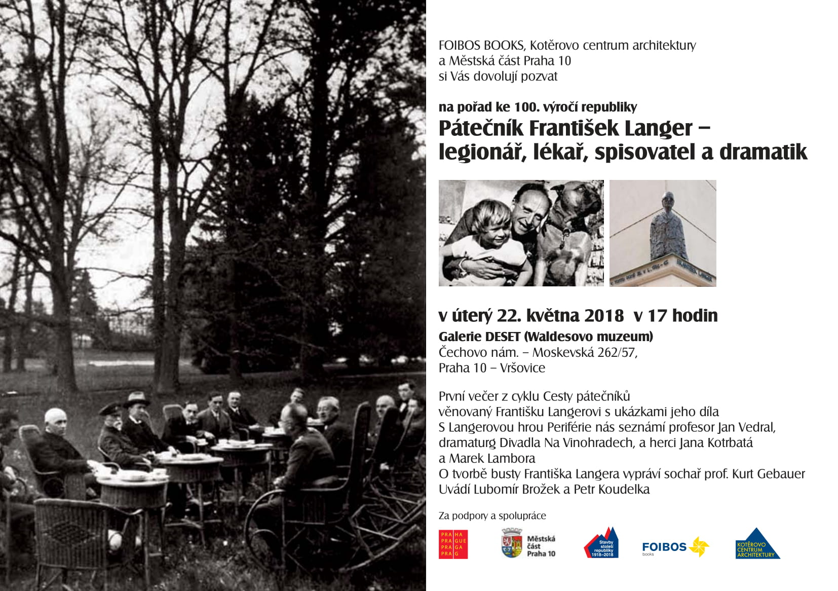 10.05.2018Srdečně Vás zveme na přednáškový večer z cyklu vzpomínkových večerů u příležitosti 100. výročí republiky na téma Pátečník František Langer - legionář, lékař, spisovatel a dramatik. Tento první večer z cyklu Cesty pátečníků se koná v úterý 22. května od 17:00 v Galerii DESET na Čechově náměstí.