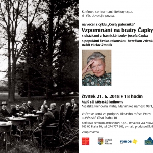 04.06.2018Kotěrovo centrum architektury, Hlavní město Praha a Městská část Praha 10 Vás srdečně zvou na večer z cyklu Cesty pátečníků. Ve čtvrtek 21. června od 18:00 v Malém sále Městské knihovny v Praze na Mariánském náměstí.