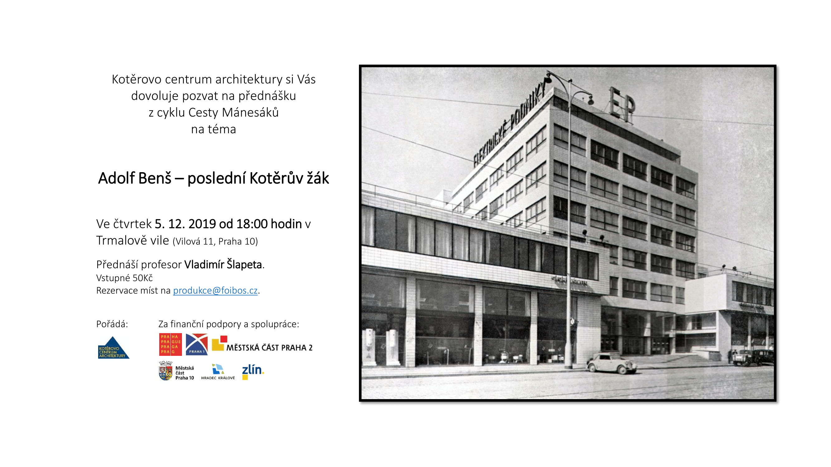 21.11.2019Zveme Vás na přednášku na téma: Adolf Benš - poslední Kotěrův žák.