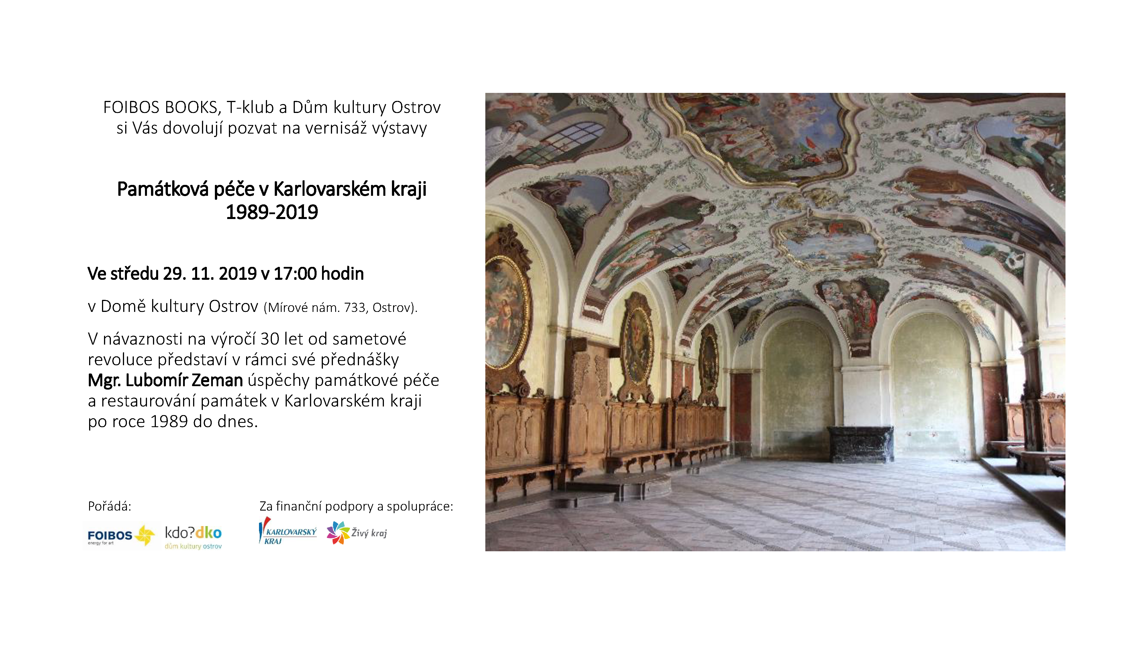 05.12.201929.11.2019 se v Domě Kultury v Ostrově konala vernisáž výstavy Památkové péče 1989-2019 v Karlovarském kraji. Svou přednáškou připomenul Mgr. Lubomír Zeman úspěchy památkové péče tohoto kraje.