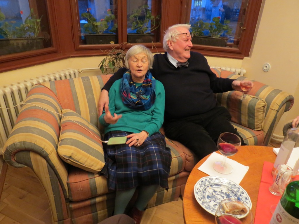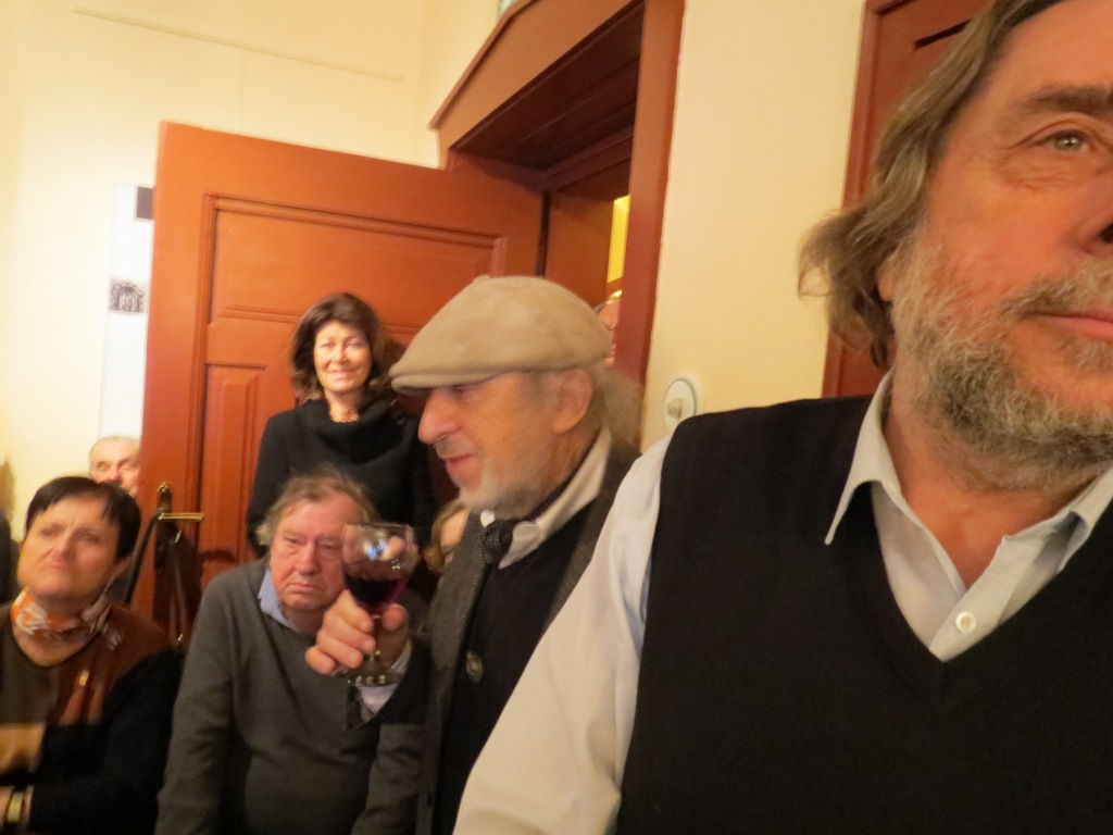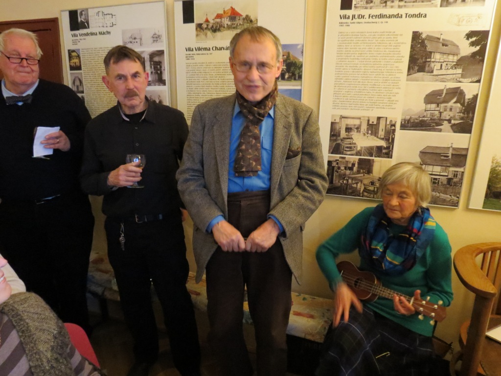 Úvodem večera představili jubilanta ředitel Kotěrova centra Oldřich Janota a prof. Ing. arch. Vladimír Šlapeta, DrSc. Paní PhDr. Daniela Karasová, jinak kurátorka Uměleckoprůmyslového muzea se svým manželem Pavlem mu v úvodu večera zazpívali tři chorvatské písničky.