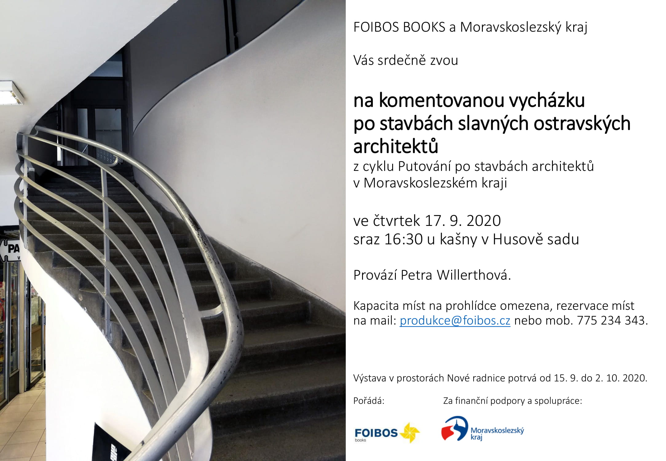 Ve čtvrtek 17. září 2020 proběhne komentovaná vycházka po stavbách slavných ostravských architektů. Trasa vycházky povede od Husova sadu, kde bude u kašny v 16:30 sraz, přes Mercure, Vesmír, Elektru na Masarykovo náměstí.