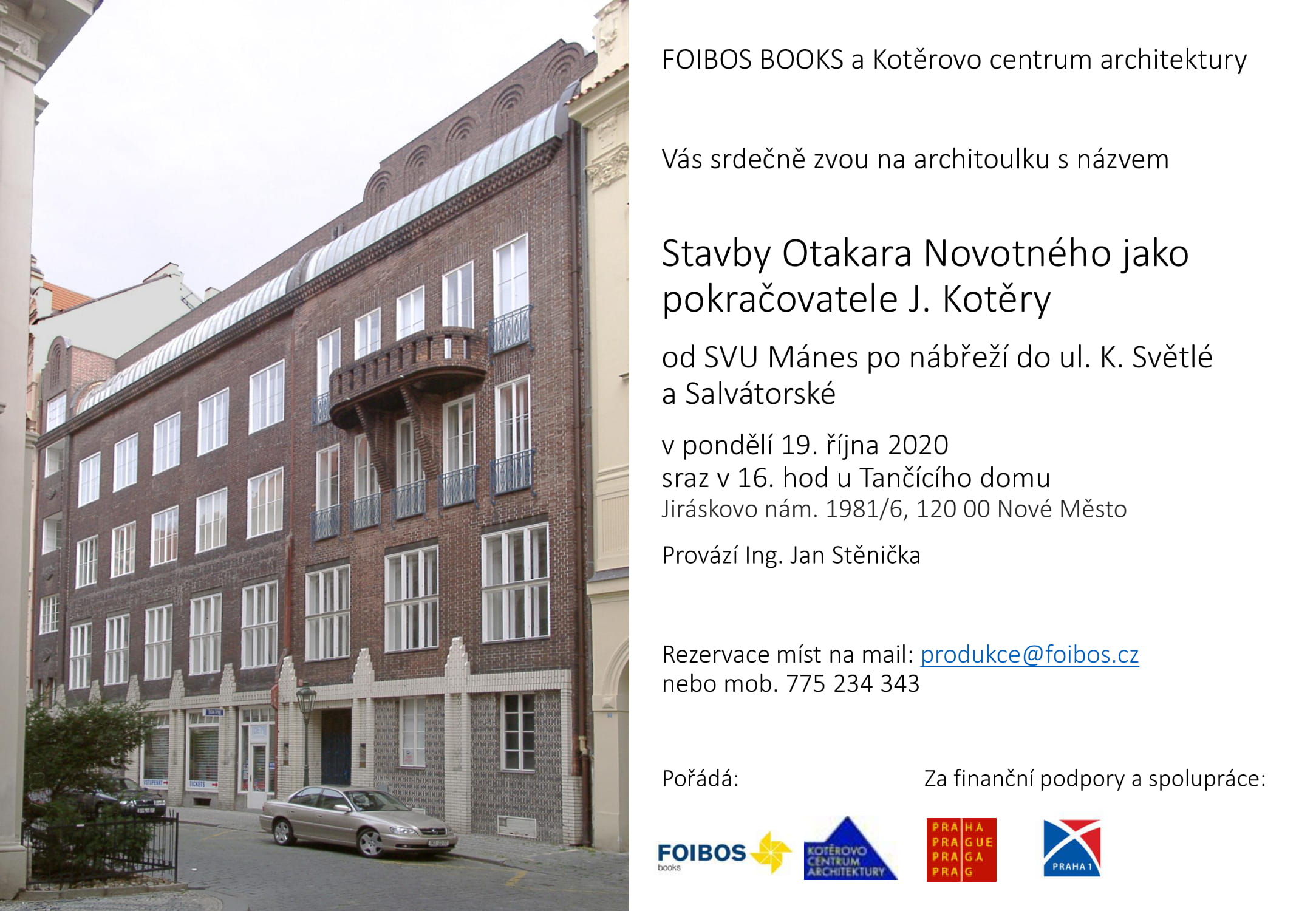 07.10.2020Zveme Vás na architoulku s názvem Stavby Otakara Novotného jako pokračovatele J. Kotěry - od SVU Mánes po nábřeží do ul. K. Světlé a Salvátorské. V pondělí 19. října 2020, sraz v 16 . hod u Tančícího domu (Jiráskovo nám. 1981/6, 120 00 Nové Město).