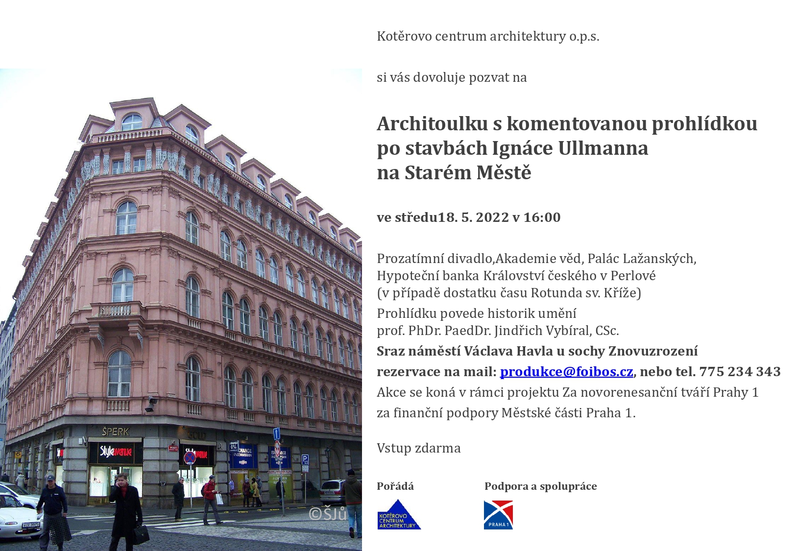 10.05.2022Kotěrovo centrum architektury o.p.s. si vás dovolují pozvat ve středu 18. 5. 2022 v 16:00 na Architoulku s komentovanou prohlídkou po stavbách Ignáce Ullmanna na Starém Městě.