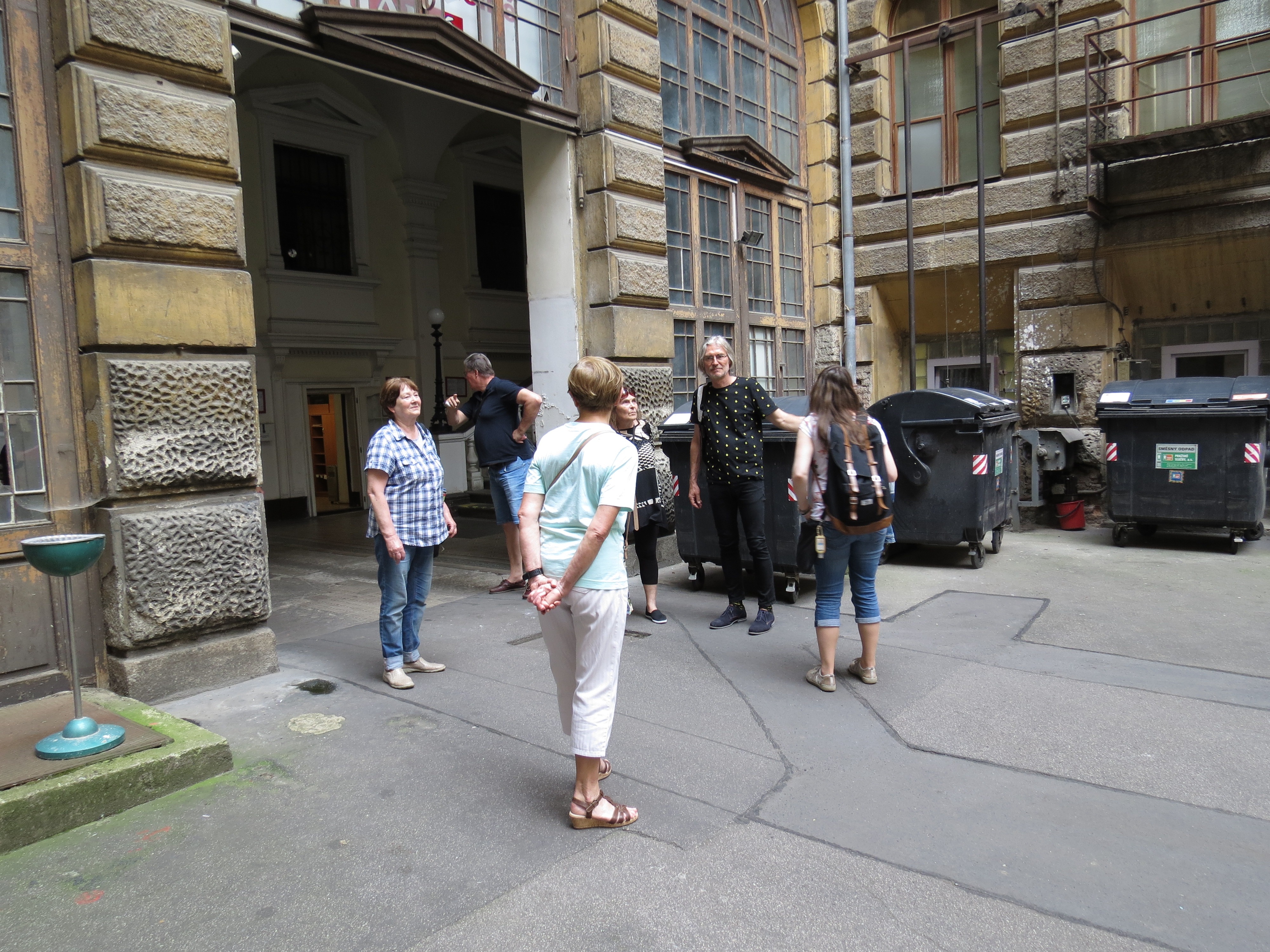 Poté jsme nahlédli do další Ullmannovy stavby v ulici Politických vězňů, sousední správní budovy Buštěhradské dráhy a na skok vedle také jedné z posledních realizací slavného Jana Kotěry, Ústřední budovy Vítkovického horního a hutního těžířstva.