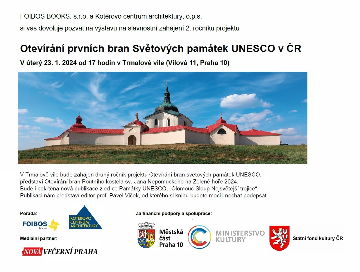 V Trmalově vile bude zahájen druhý ročník projektu Otevírání bran světových památek UNESCO, představí Otevírání bran Poutního kostela sv. Jana Nepomuckého na Zelené hoře 2024. Bude i pokřtěna nová publikace z edice Památky UNESCO, „Olomouc Sloup Nejsvětější trojice“. Publikaci nám představí editor prof. Pavel Vlček, od kterého si knihu budete moci i nechat podepsat