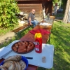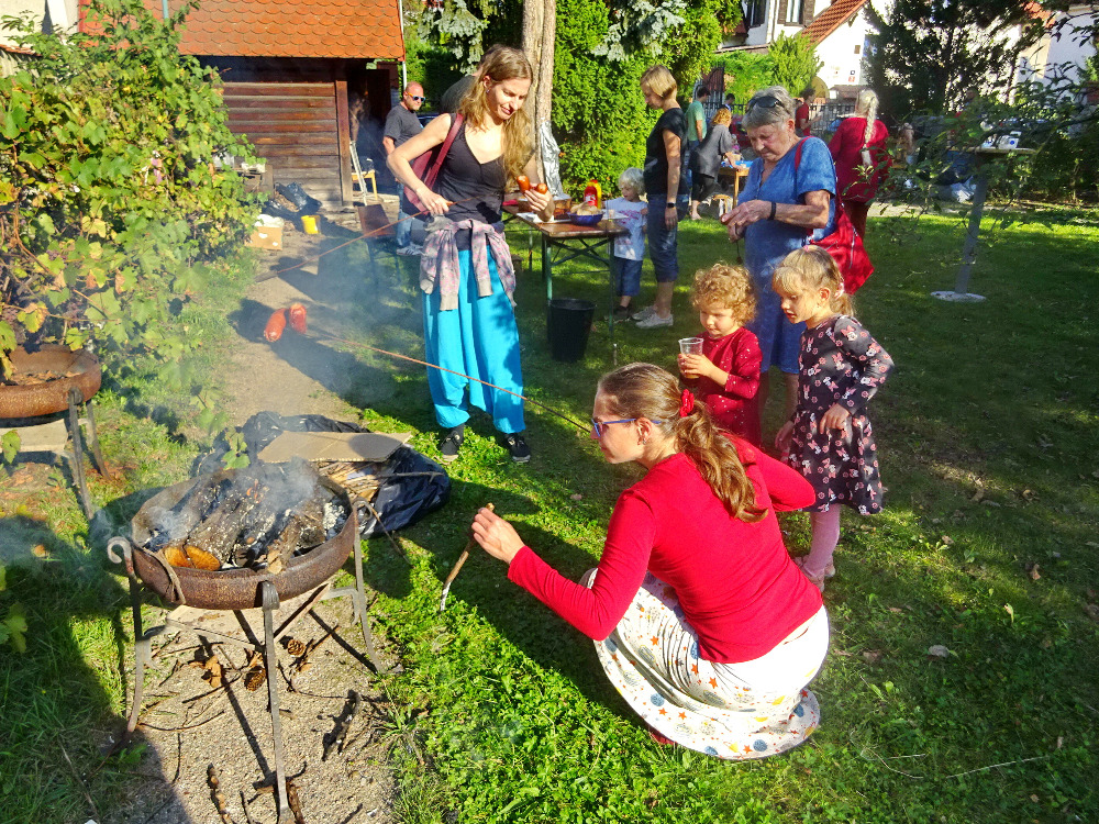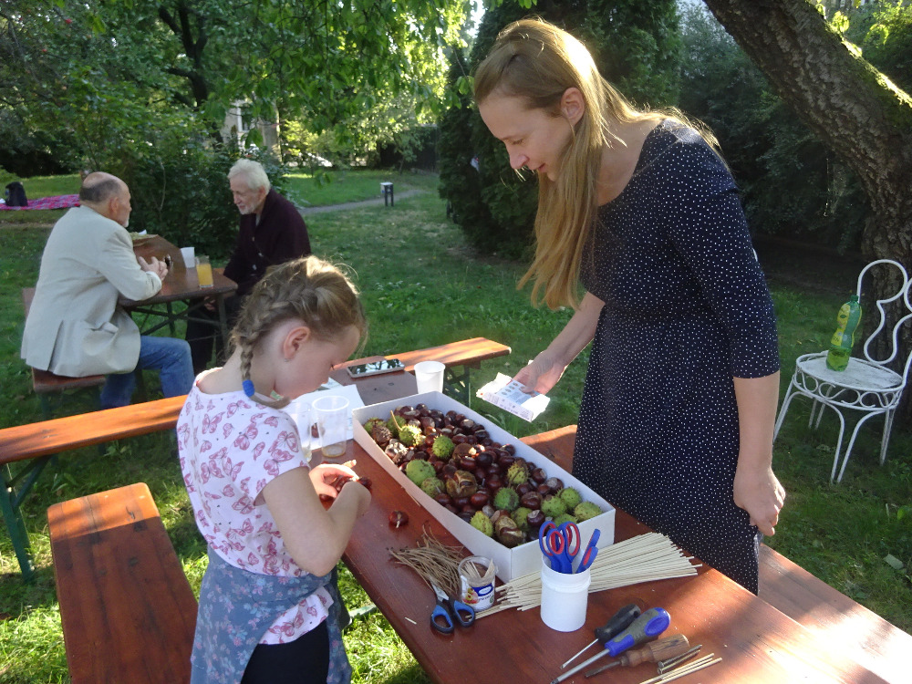 26.09.2024Děkujeme všem, kteří se s námi zúčastnili báječné nedělní zahradní slavnosti! I ti nejmladší návštěvníci se zapojili do česání jablíček z jabloní, naučili se, jak se z nich získává mošt a následně si na něm pochutnali. Bohatá byla také úroda sladkého hroznového vína, rodiče svým ratolestem pomohli s výrobou zvířátek z kaštánků a hlad zahnaly špekáčky opečené nad ohněm. Věříme, že i za rok se tu sejdeme v tak hojné účasti a za tak krásného počasí.