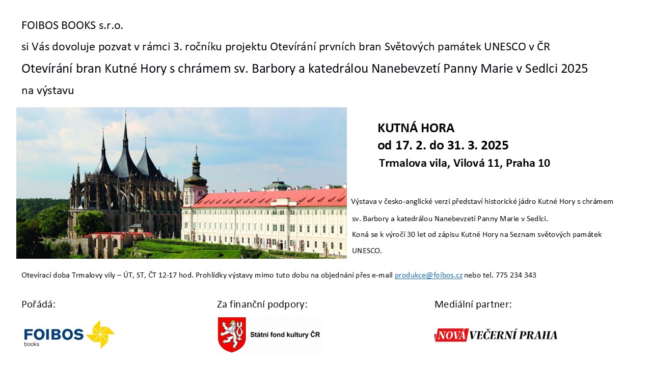 15.02.2025Výstava v česko-anglické verzi představí historické jádro Kutné Hory s chrámem sv. Barbory a katedrálou Nanebevzetí Panny Marie v Sedlci.
