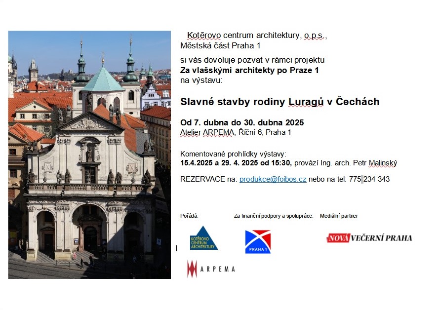 08.04.2025V roce 2025 si připomeneme 410. výročí narození Carla Luraga a 260. výročí úmrtí Anselma Luraga, dvou významných vlašských architektů, ěšťanů Malé Strany, kteří zanechali nesmazatelnou stopu. Prostřednictvím výstavy a doprovodného programu - komentovaných prohlídek, přednášek a architoulek chceme přiblížit obyvatelům a návštěvníkům Prahy 1 tato významná architektonická díla.