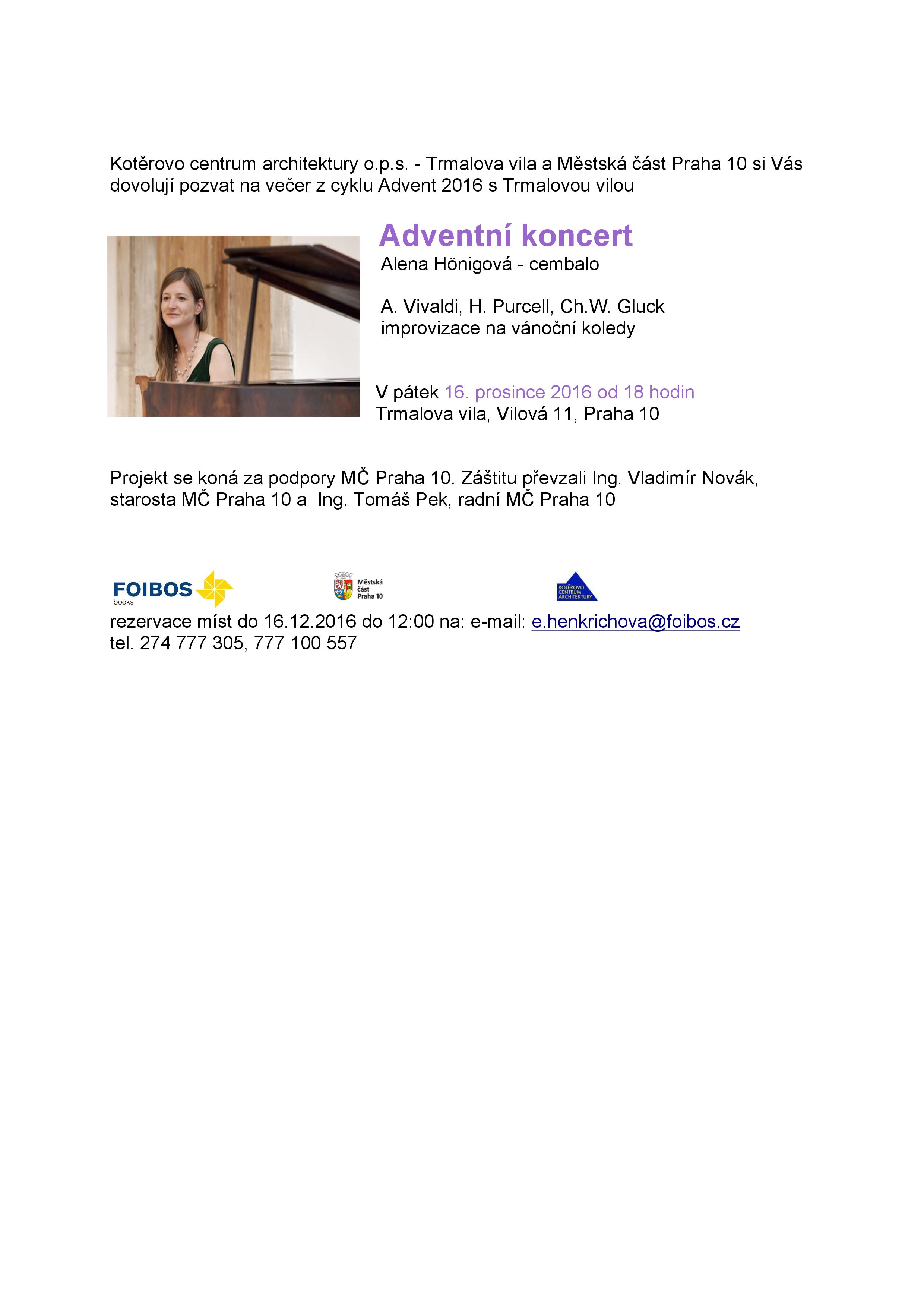 09.12.2016Kotěrovo centrum architektury o.p.s. - Trmalova vila a Městská část Praha 10 si Vás dovolují pozvat na večer z cyklu Advent 2016 s Trmalovou vilou