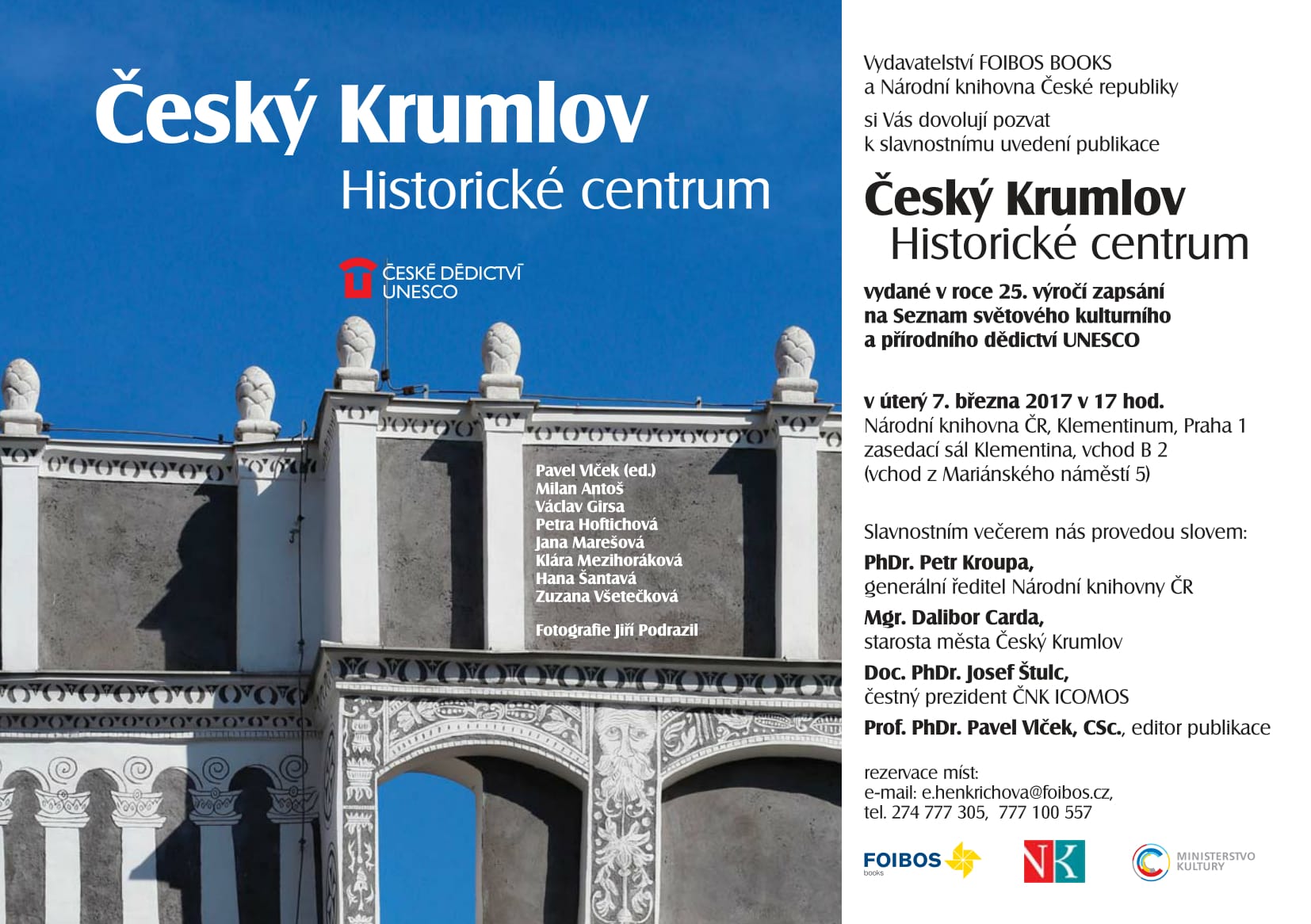 20.02.2017Srdečně Vás zveme na slavnostní křest nové publikace Český Krumlov - Historické centrum, který se uskuteční v zasedacím sále Klementina v úterý 7. března 2017 v 17 hodin.
