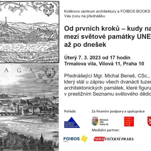 Kotěrovo centrum architektury a FOIBOS BOOKS Vás zvou na přednášku "Od prvních kroků – kudy na to – mezi světové památky UNESCO až po dnešek". V úterý 7. 3. 2023 od 17 hodin v