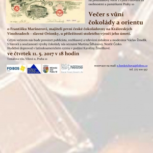 Celým večerem nás bude provázet publicista, rozhlasový a televizní redaktor a moderátor Václav Žmolík a s historií a současností výroby čokolády nás seznámí Martina Šilhánová, manažerka společnost Netlé. Nebude chybět hudební doprovod v lationskoamerickém rytmu v podání Karolíny Žmolíkové.