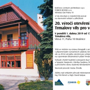 Kotěrovo centrum architektury o.p.s, FOIBOS BOOKS s.r.o. a Městská část Praha 10 si Vás dovolují co nejsrdečněji pozvat na slavnostní setkání u příležitosti 20. výročí otevření Trmalovy vily pro veřejnost